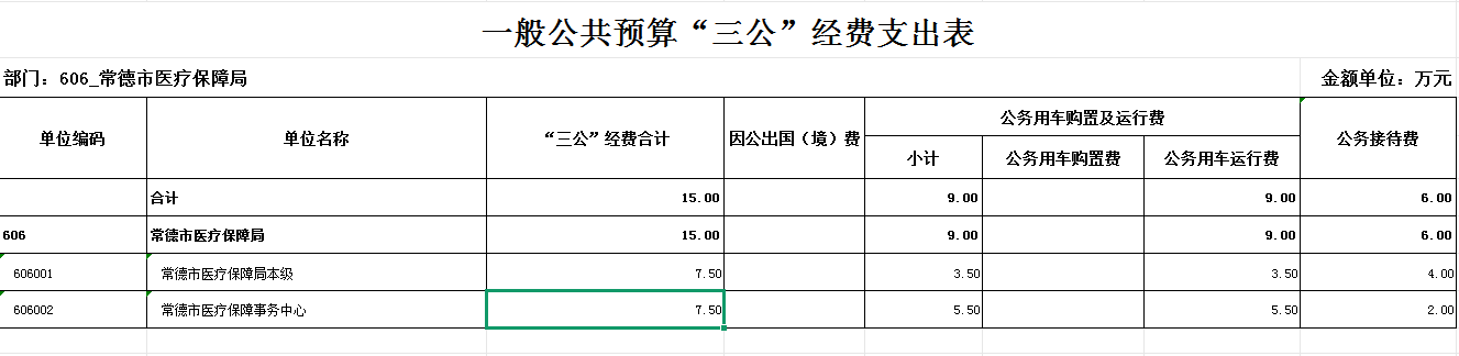 常德市医疗保障局2025年一般公共预算“三公”经费支出表